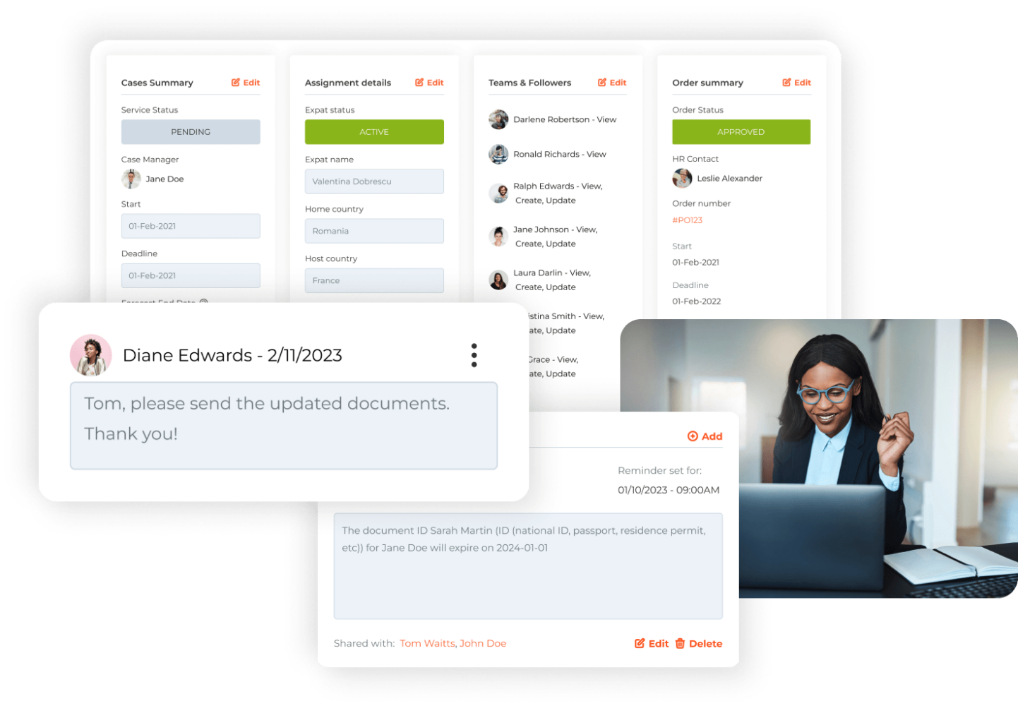 Learn moreCentralize assignment and expat data, tasks, and progress securely in a GDPR compliant platform, eliminating the need for spreadsheets. Stay informed with real-time insights into service providers' progress and tasks, ensuring operational efficiency